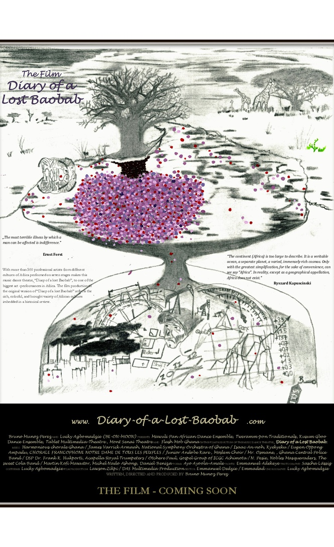 The Musical “Diary of a lost Baobab” - performed on 7 stages, by more than 500 professional artists from different parts of Africa - and its cinematic film-production is trying to reflect the rich, colorful and brought variety of African cultures imbedded in a Historical review… and is accompanied by highlights of the music-history of African traditional, neo-traditional and modern music.